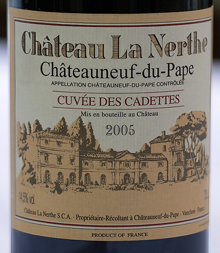 2005 Château La Nerthe, "Cuvée des Cadettes" (60% Grenache, 10% Syrah, 30% Mourvèdre plus others)