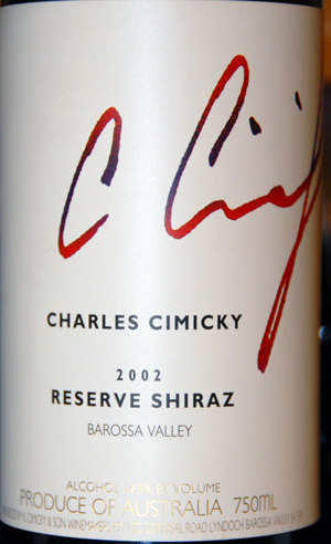 2002 Charles Cimicky Shiraz Reserve – Barossa Valley, SA.