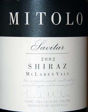 2002 Mitolo "Savitar" Shiraz – McLaren Vale, South Australia (SA).