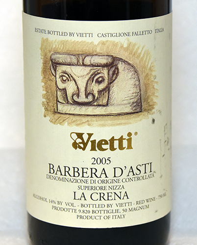 Barberas are known for consitency, freshness, cherries, food-friendly acidity and likes hot weather. Vietti makes 5 labels and all recognized. They are pressed, fermented and transferred to French oak for secondary (malolactic) fermentation, which gives better acidity and smoothness. Tre Vigne is a blend of sites and should last 10+ years; La Crena (70 year-old vines, unfiltered) and Scarrone ($90) are single site efforts and often go to 20 years, but are more fruity than Barolo. Vietti likes to think they have "weight"; we've tried the 2006 La Crena in June of 2016 and it was "not old". Smoother than Dolcetto, goes well with tomato-based dishes. Barbera is the third most planted red grape in Italy. For excellent recent vintages, look for 2012 and 2015. Generally, good Barolo makers are good Barbera makers, who use the latter for quick cash.